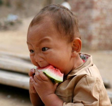 小娃娃吃瓜头像的创意应用可不少。以下是一些例子: